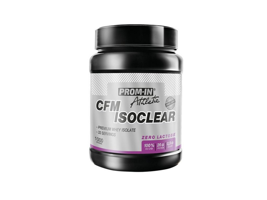 Prom-in CFM Isoclear je nový produkt obsahující syrovátkový izolát, který je vyrobenou nejpokročilejší metodou CFM, která je k surovině velmi šetrná, ale zároveň dokáže odstranit nežádoucí tuk a laktózu. Každá dávka obsahuje 25g vysoce kvalitní bílkoviny s velmi rychlou vstřebatelností. Neobsahuje plnidla, zahušťovadla ani umělá barviva. Protein je vhodný i do redukčních diet a vyznačuje se delikátní chutí.
