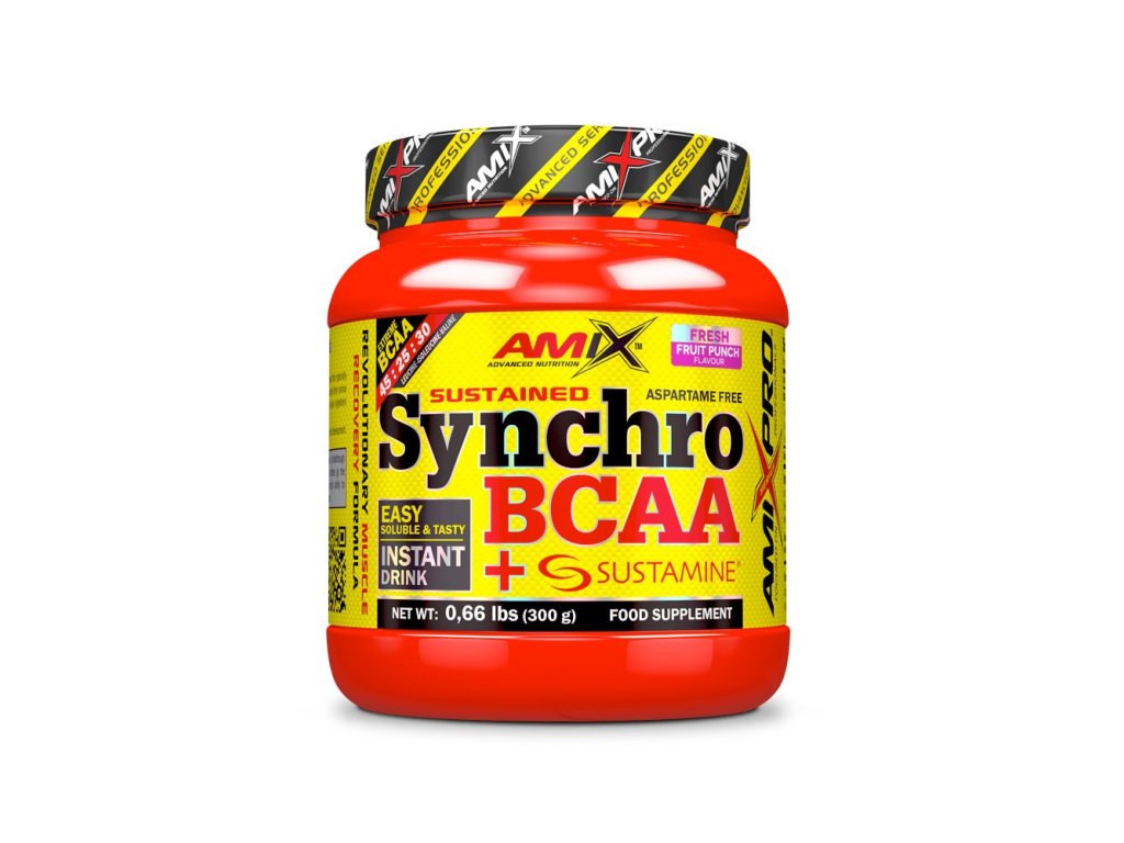 Synchro BCAA + Sustamine® Drink jsou vylepšené BCAA v kombinaci s unikátní složkou L-Alanyl-L-Glutamin - Sustamine®. Ochucené BCAA ve speciálním poměru 45:25:30 jsou lehce rozpustné. Potřebujete po náročném tréninku uvolnit? Tak Synchro BCAA + Sustamine® Drink je ten pravý. BCAA pochází z nové řady Amix PRO, která se řadí mezi špičku.
