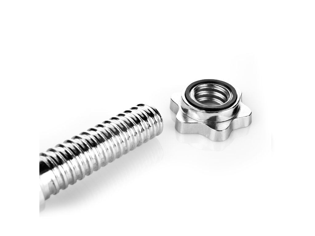 Koncovky hřídele byly vyrobeny tak, aby díky závitům mohlo závaží být přišroubováno a během cvičení bylo ve stabilní poloze.