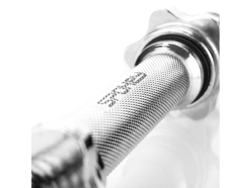 Protiskluzová úprava úchytu pomáhá při stabilitě a síle úchopu osy. Menší rozměry umožňují lehký transport a úschovu činky.