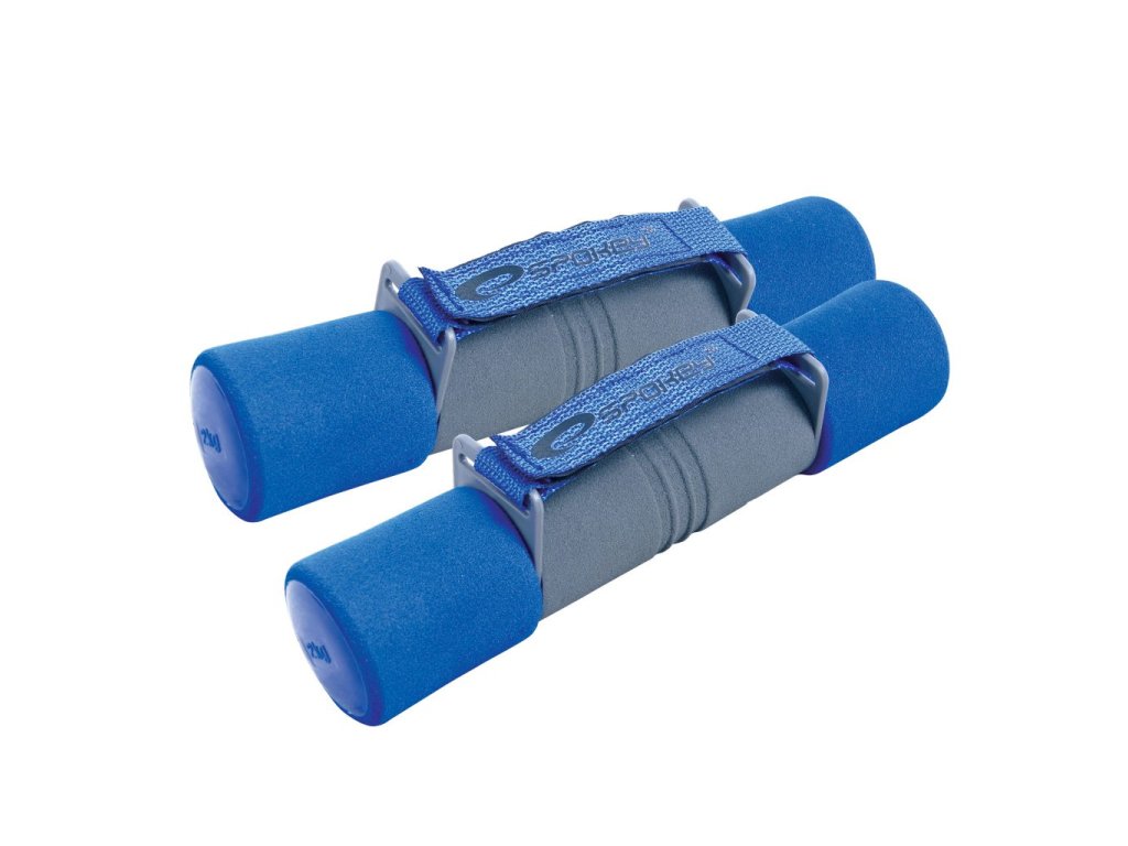 Spong činky 2 x 2kg jsou z řady výrobce Spokey zaměřeného na výrobu fitness doplňků a fitness nástrojů. Spong činky mají zápěstní popruh, takže se nemůže stát, že vám vyklouznou z ruky. Aretují se pomocí suchého zipu. Je to výhoda pro mrštný trénink. Navíc jsou velice pohodlné a dobře se drží.