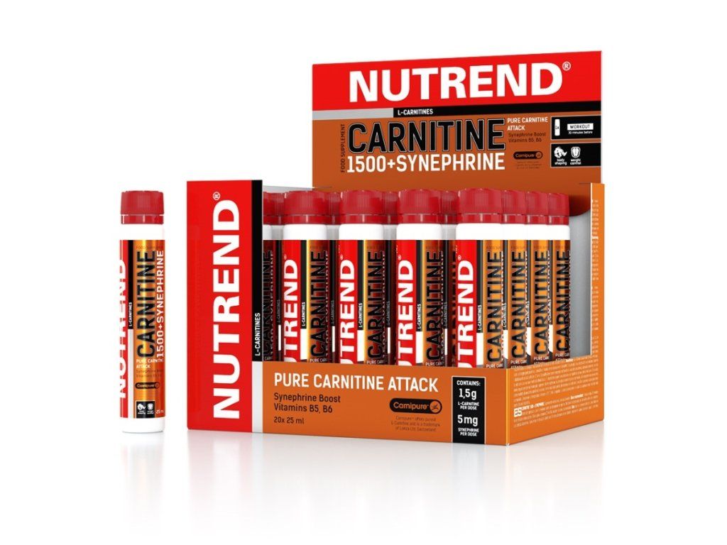 Nutrend Carnitine 1500 + Synephrine je kombinace L-karnitinu, synephrinu, vitaminů B5 a B6. Vitaminy B5 a B6 přispívají k normálnímu energetickému metabolismu. Tato směs látek je vhodná především v období redukčních diet.