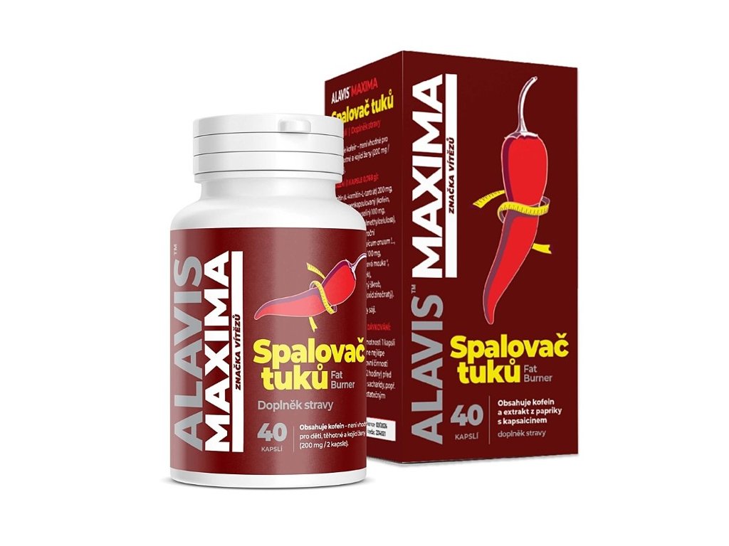 Alavis Maxima Spalovač tuků je doplněk stravy určený pro podporu kontroly tělesné hmotnosti, energetického metabolismu a fyzického výkonu. Kombinuje tři funkční složky – extrakt z papriky s kapsaicinem, mikroenkapsulovaný kofein s prodlouženým uvolňováním a L-karnitin. Složení je navrženo tak, aby nezatěžovalo trávicí trakt a bylo vhodné pro aktivní jedince i sportovce.
