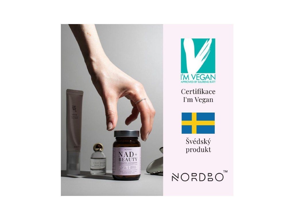 NAD+ Beauty 30 kapslí představuje sofistikovaný komplex pro podporu mladistvého vzhledu pokožky a celkové péče o pleť zevnitř. Kombinuje čtyři pečlivě vybrané aktivní látky – nikotinamid ribosid chlorid (NR), resveratrol z křídlatky japonské, astaxanthin Astabead™ a vitamín C ve formě askorbátu vápenatého.