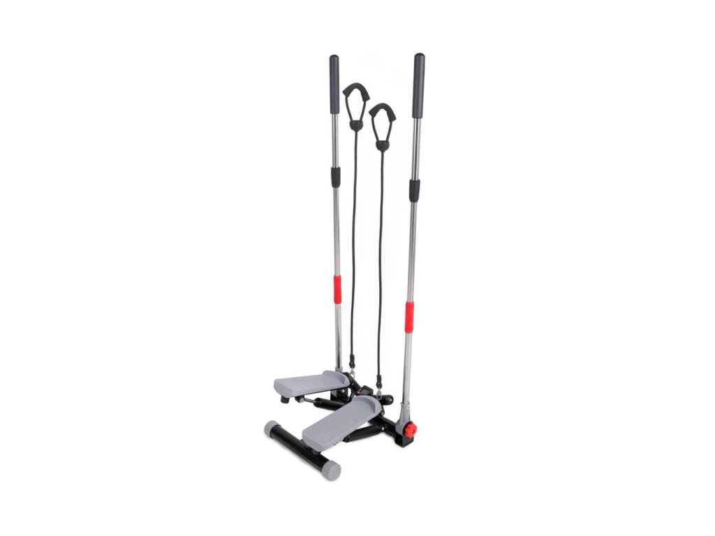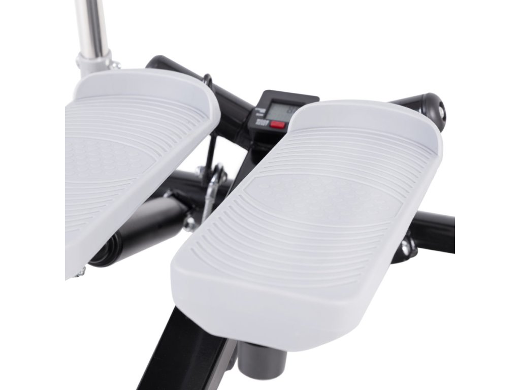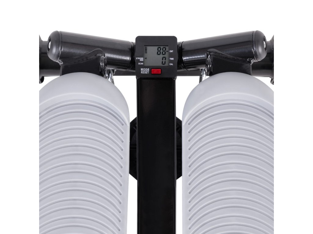 Stepper Nordic II Walking s rameny umožňuje trénink celého těla a funguje jako simulátor tréninku Nordic Walking a je multifunkčním zařízením. Umožní Vám trénovat nohy, paže, hrudník i ramena. Přístroj je ideální jako příprava na dovolenou, turistiku, vhodný jako trénink pro lyžaře a pro modelování hýždí a stehen.