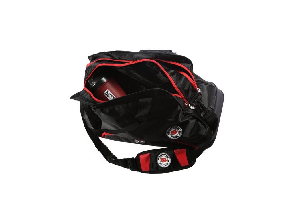Objemná taška na věci do posilovny, nakrabičkovaná jídla i šejkr.
